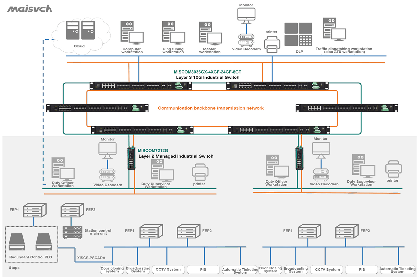 Maisvch propose des solutions de réseau industriel de bout en bout conçues pour répondre aux exigences strictes des environnements d'exploitation ferroviaire. Nos solutions couvrent trois domaines d'infrastructure fondamentaux :Systèmes embarqués ;Infrastructures en bordure de route;Opérations de la station